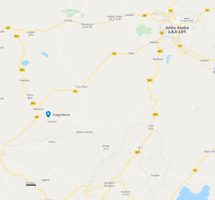 L’area del presente progetto è quella del Centro sanitario cattolico di GUAGUREBORA (GBHC) nel distretto di Woliso a 126 km a sud est di Addis Abeba, abitato dalla gente Oromo e la cui popolazione è di 194.676 abitanti l’85% dei quali vive in piccole fattorie con un’economia di sussistenza agricola con pochi prodotti: il principale il teff e altri cereali poveri. Pochi gli agricoltori che coltivano prodotti più ricchi quali il khat e il caffè.